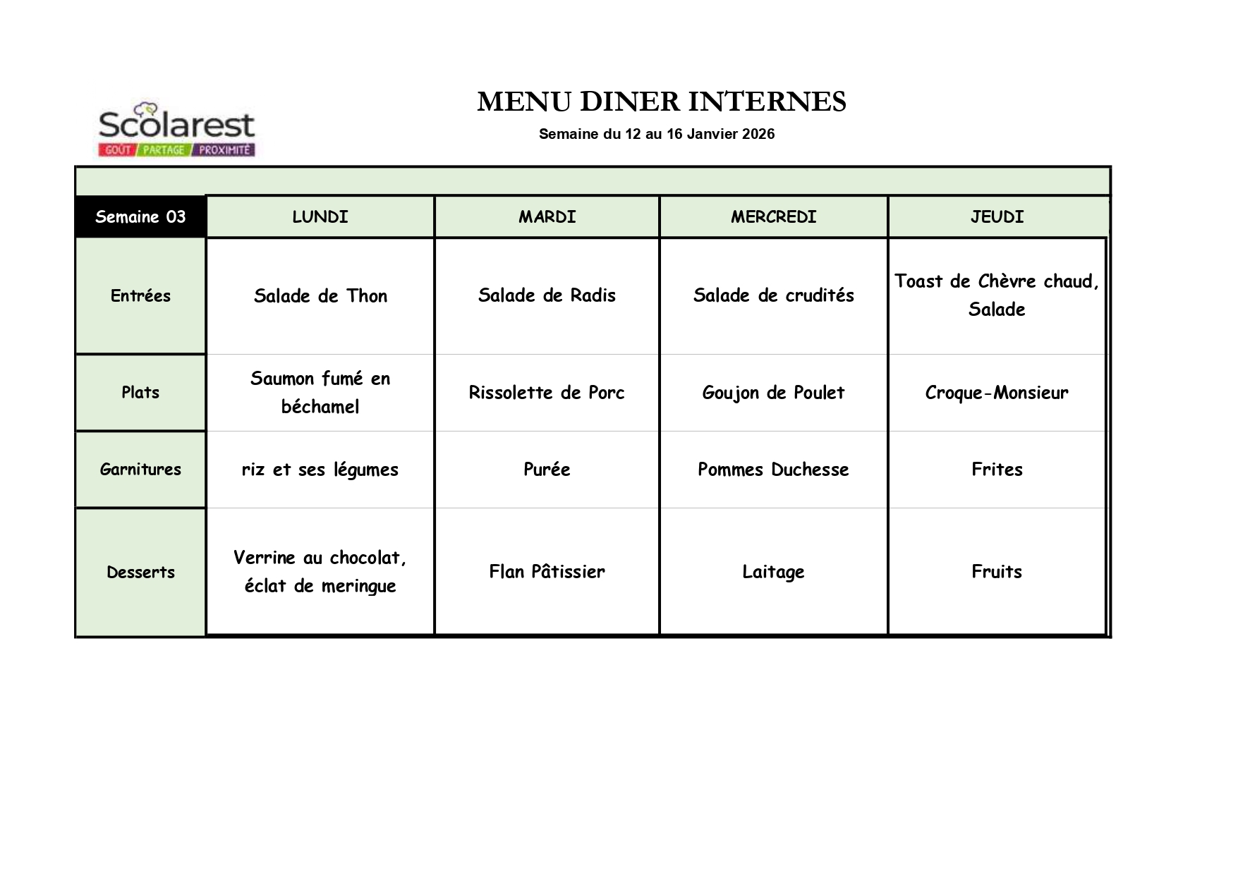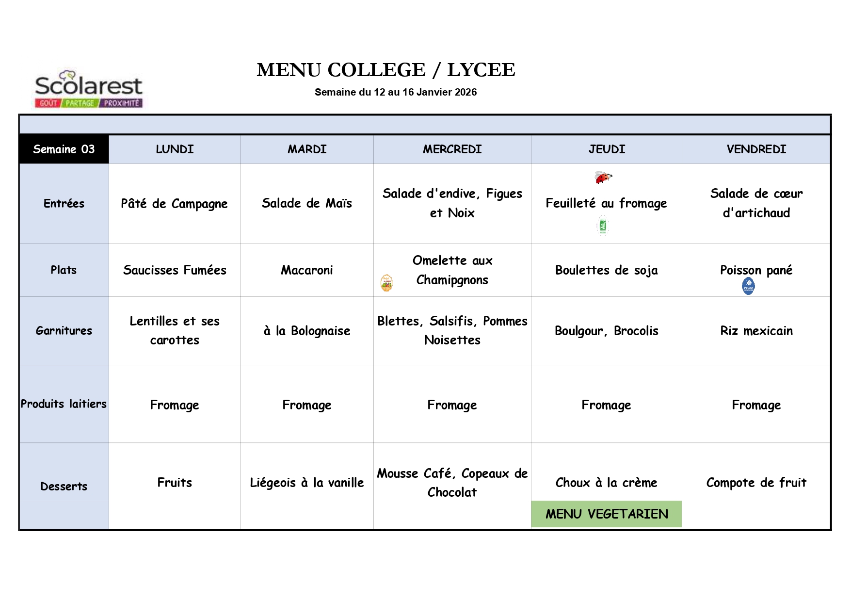 Semaine 03, du 12 Janvier au 16 Janvier 2026