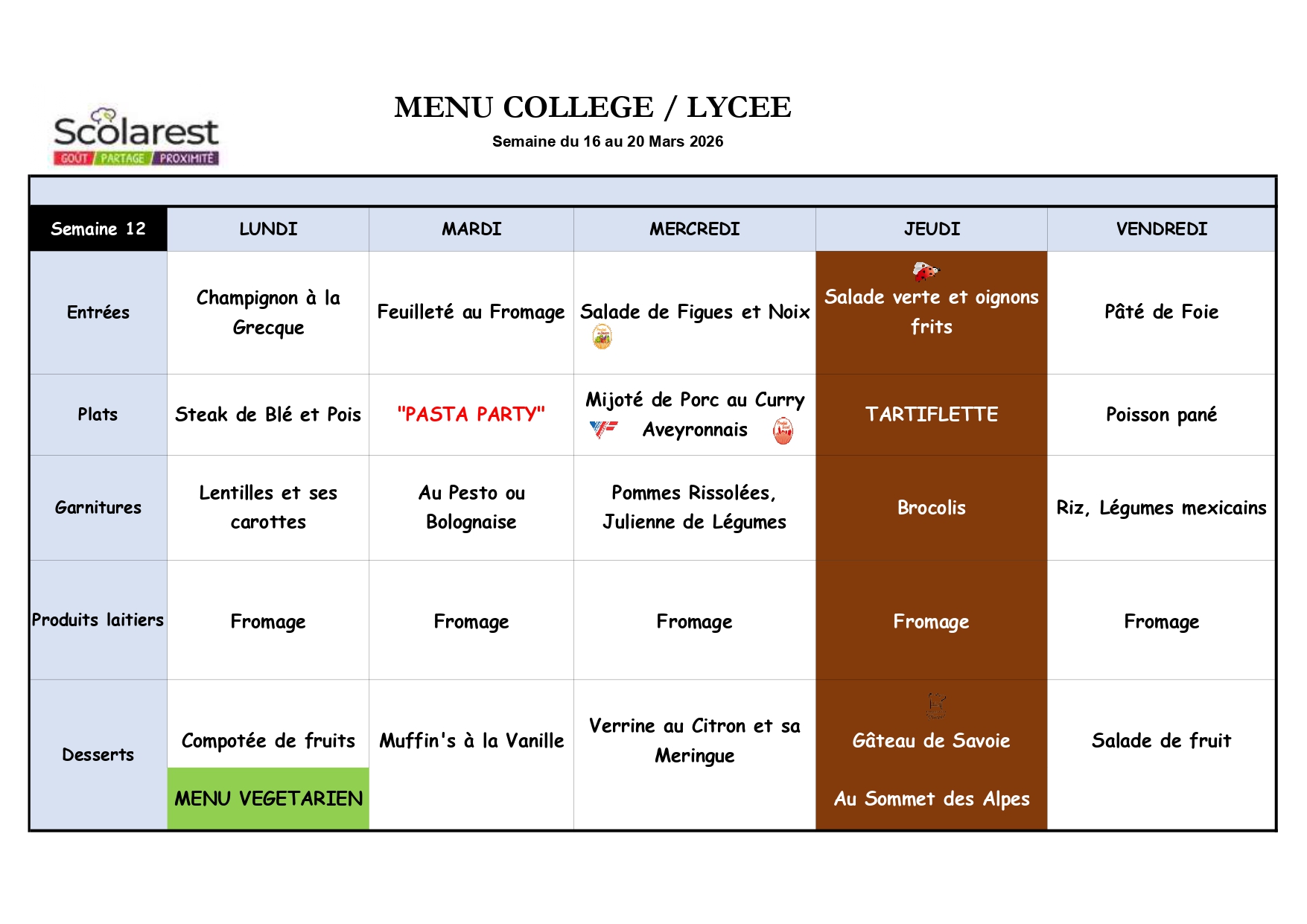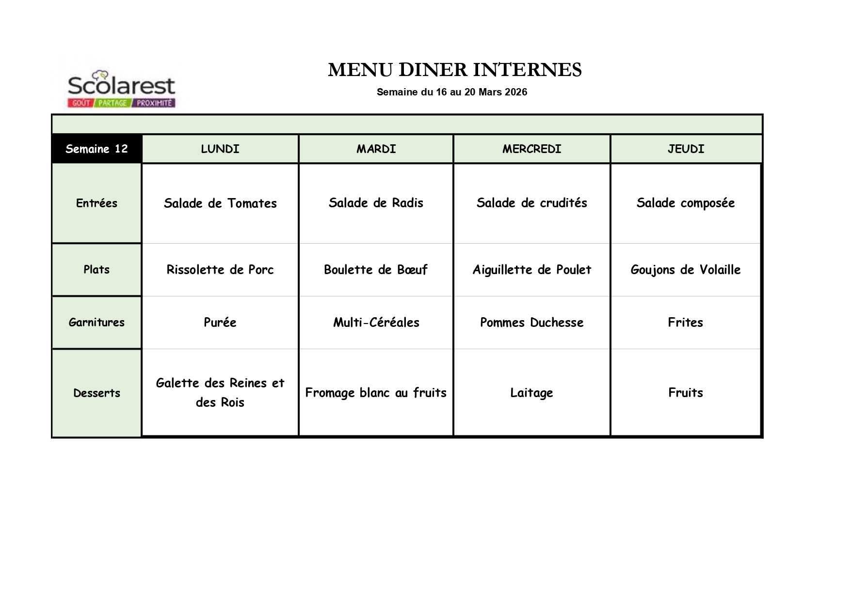 Semaine 12, du 16 Mars au 20 Mars 2026
