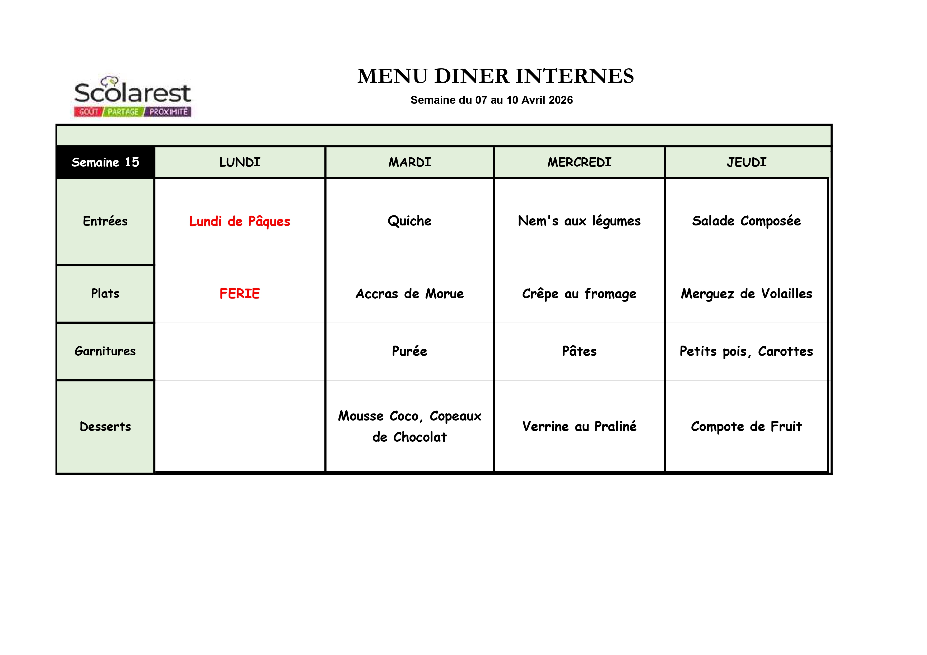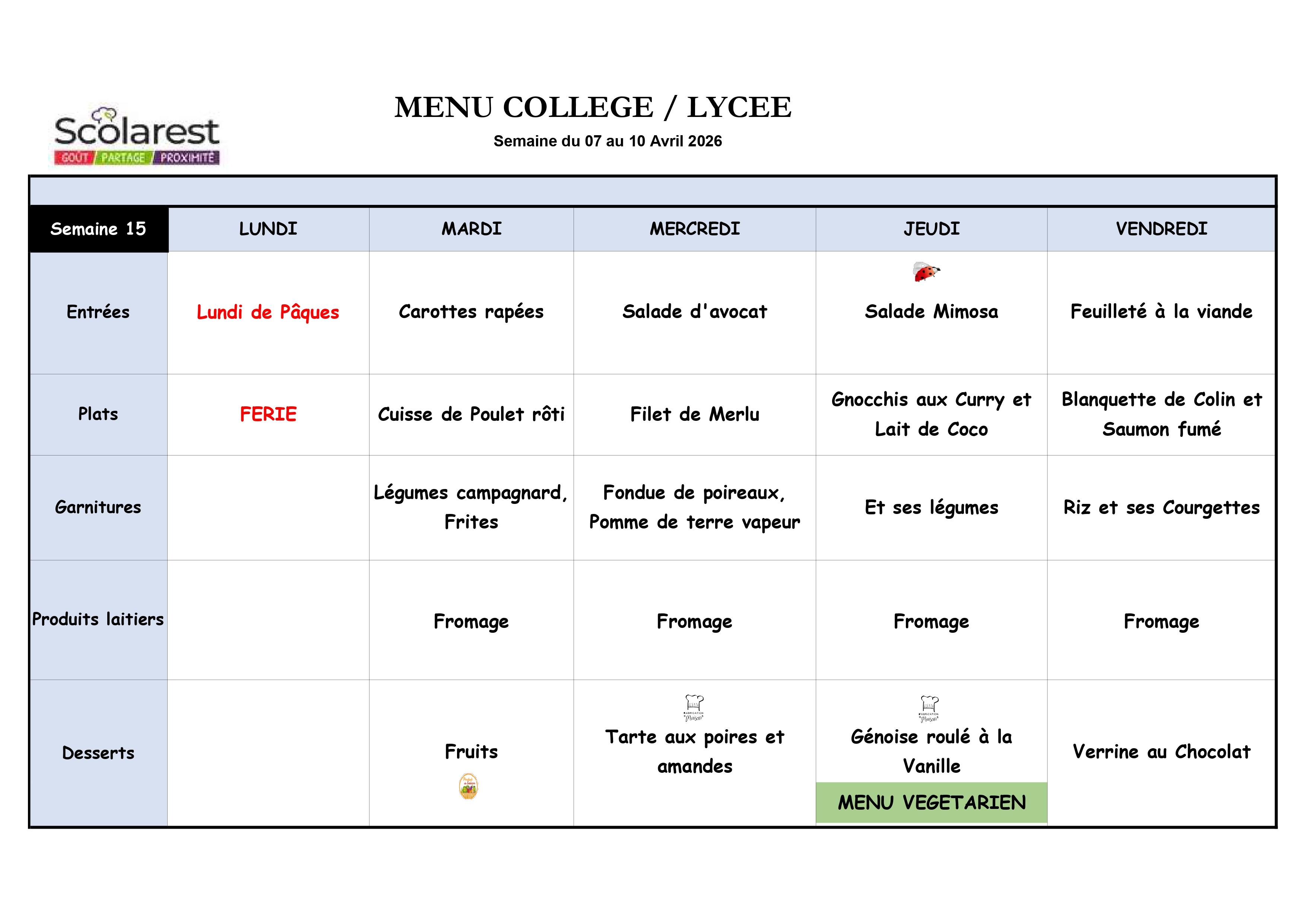 Semaine 15, du 7 Mars au 10 Avril 2026