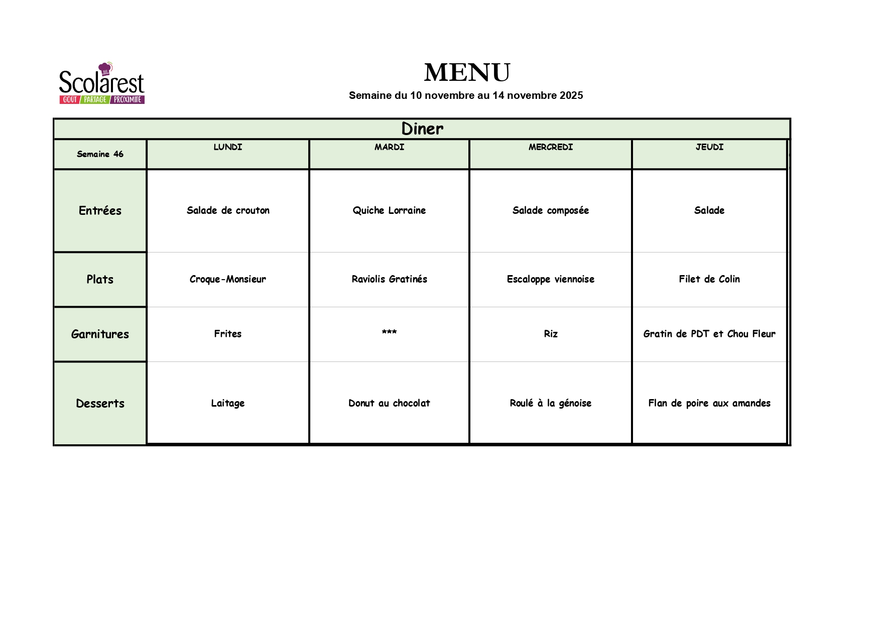 Semaine 46, du 10 Novembre au 14 Novembre 2025