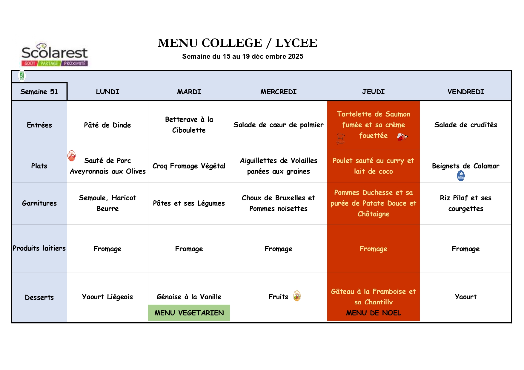 Semaine 51, du 15 Décembre au 19 Décembre 2025
